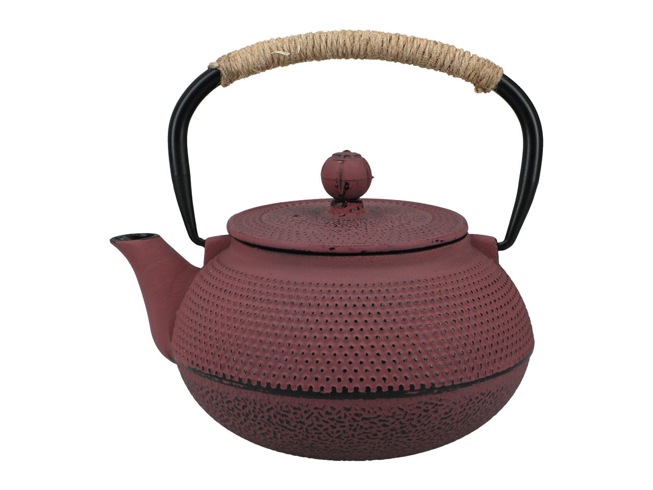 Żeliwny czajnik z emaliowanym wkładem. Dzbanek posiada metalowe sitko do zaparzania herbaty luz ziół.