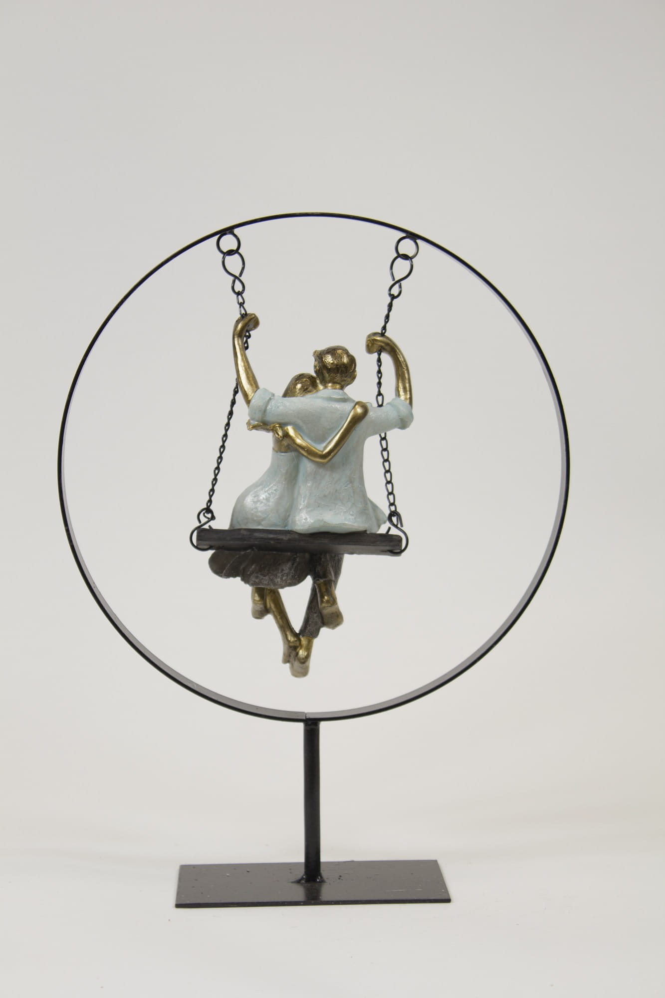 Figurka z tworzywa sztucznego przedstawiająca pare zakochanych na huśtawce w obręczy. Figurka idealna na prezent zapakowana w biały kartonik.