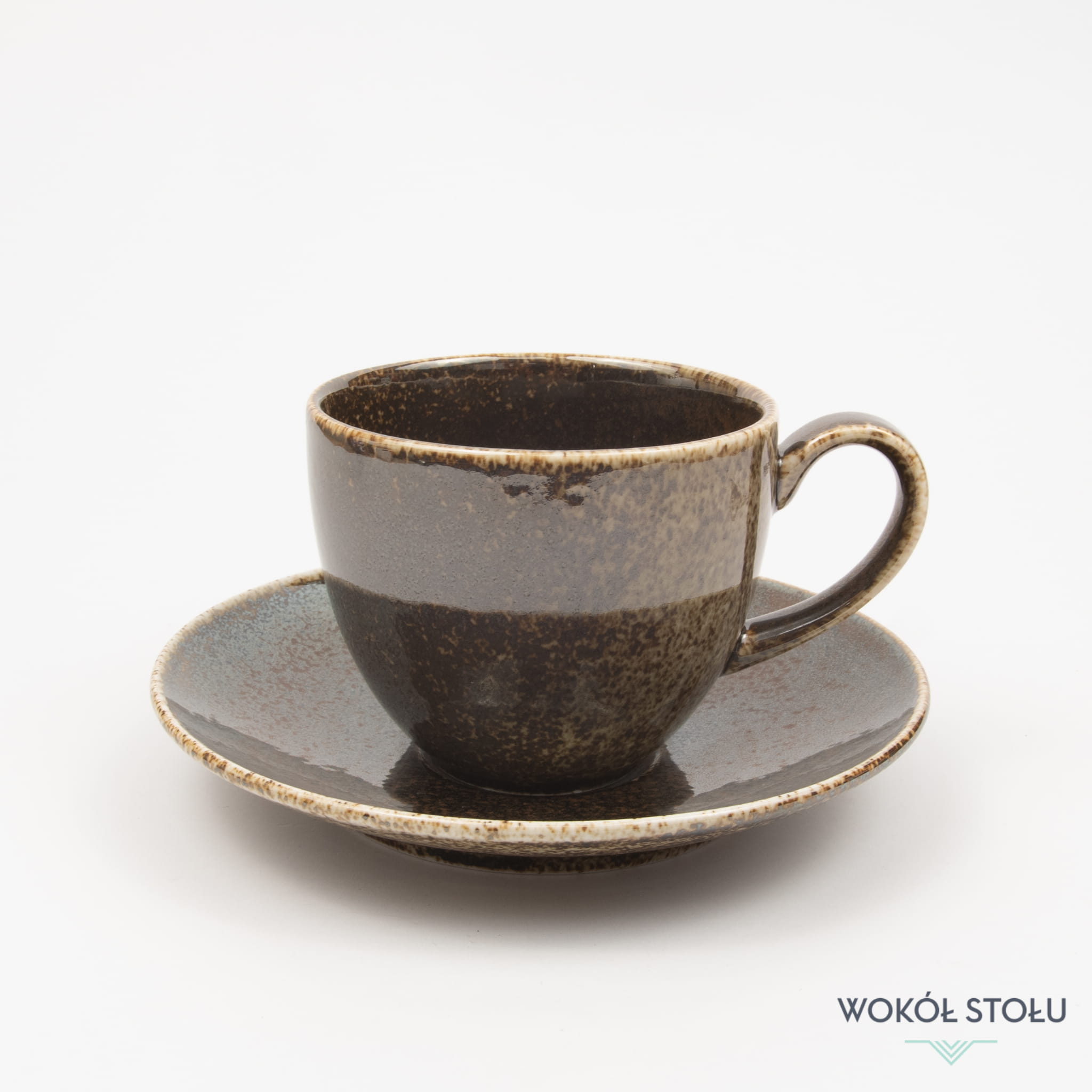 Porcelanowa filiżanka z podstawką z kolekcji Alumina Loft Dark to wyrób polskiej fabryki Bogucice Porcelana Śląska.