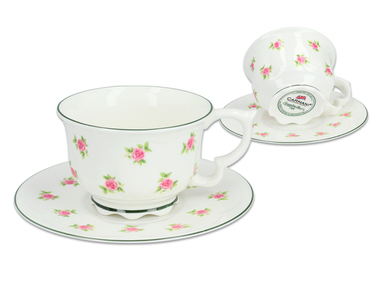Filiżanka z delikatnej porcelany kostnej typu bone china z wiktoriańskiej kolekcji Carmani. Produkty z tej serii wykonane są ręcznie z dbałością o każdy szczegół. Angielska manufaktura zadbała nie tylko o doskonałą jakość ale również o wyjątkowe wzornictwo, które przenosi nas do świata dawnej angielskiej wsi pełnej kolorowych kwiatów i ziół.
