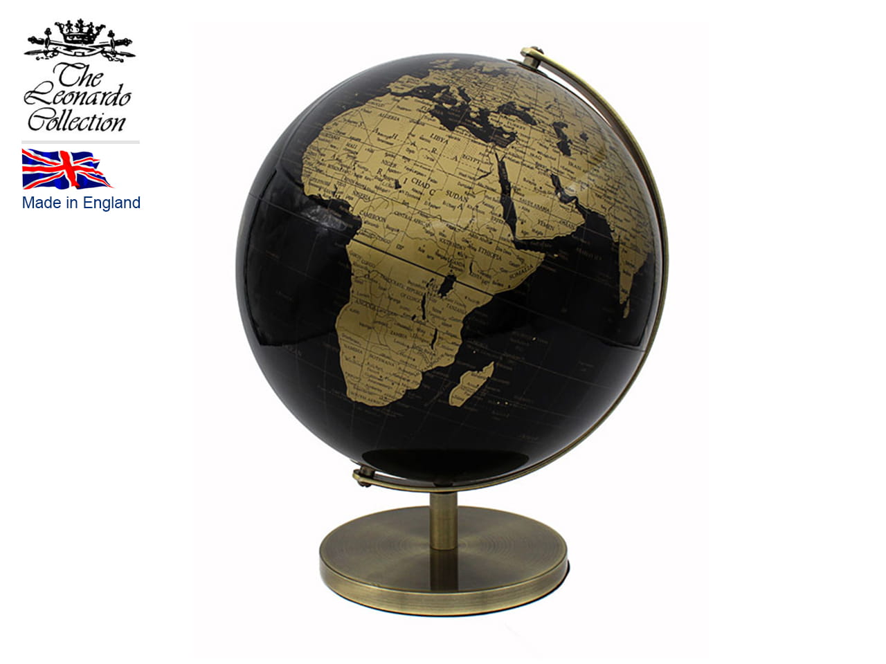 Globus dekoracyjny duży na złotej podstawie.