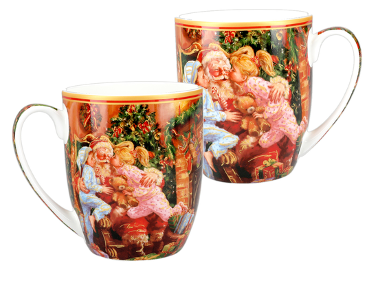 Komplet 2 kubków porcelanowych z motywem świątecznym kochanego Mikołaja. Zapakowane są w ozdobne pudełko z motywem świątecznym. Wysokiej jakości porcelana znanej i cenionej marki Carmani. Idealny pomysł na świąteczny upominek dla najbliższych.