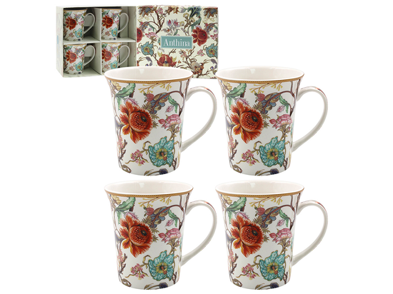 Komplet 4 kubków porcelanowych z kolekcji Leonardo England Collection - Anthina. Zapakowane są w pudełko z tym samym motywem.