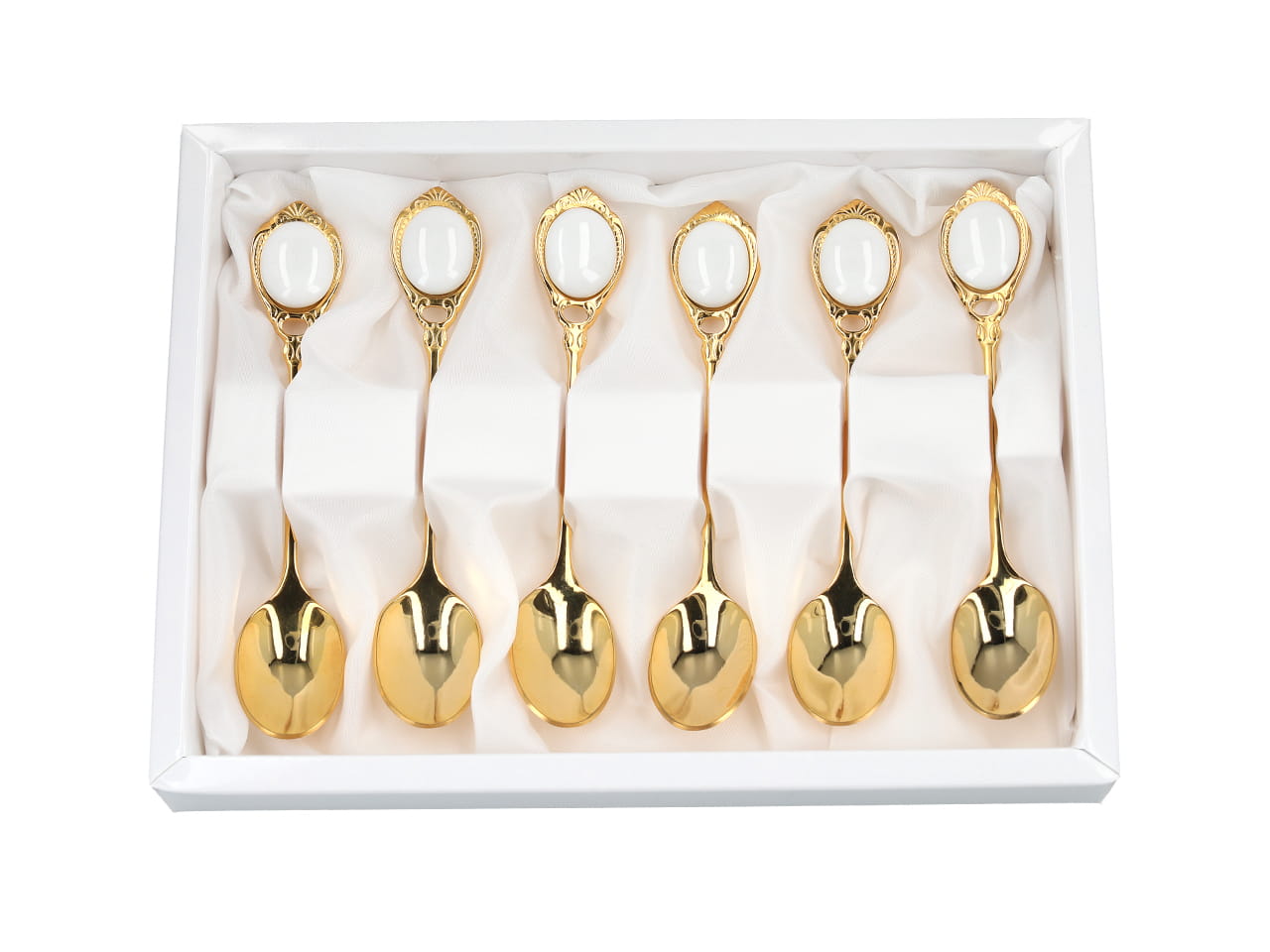Zestaw składa się z 6 ozdobnych łyżeczek w kolorze złotym.