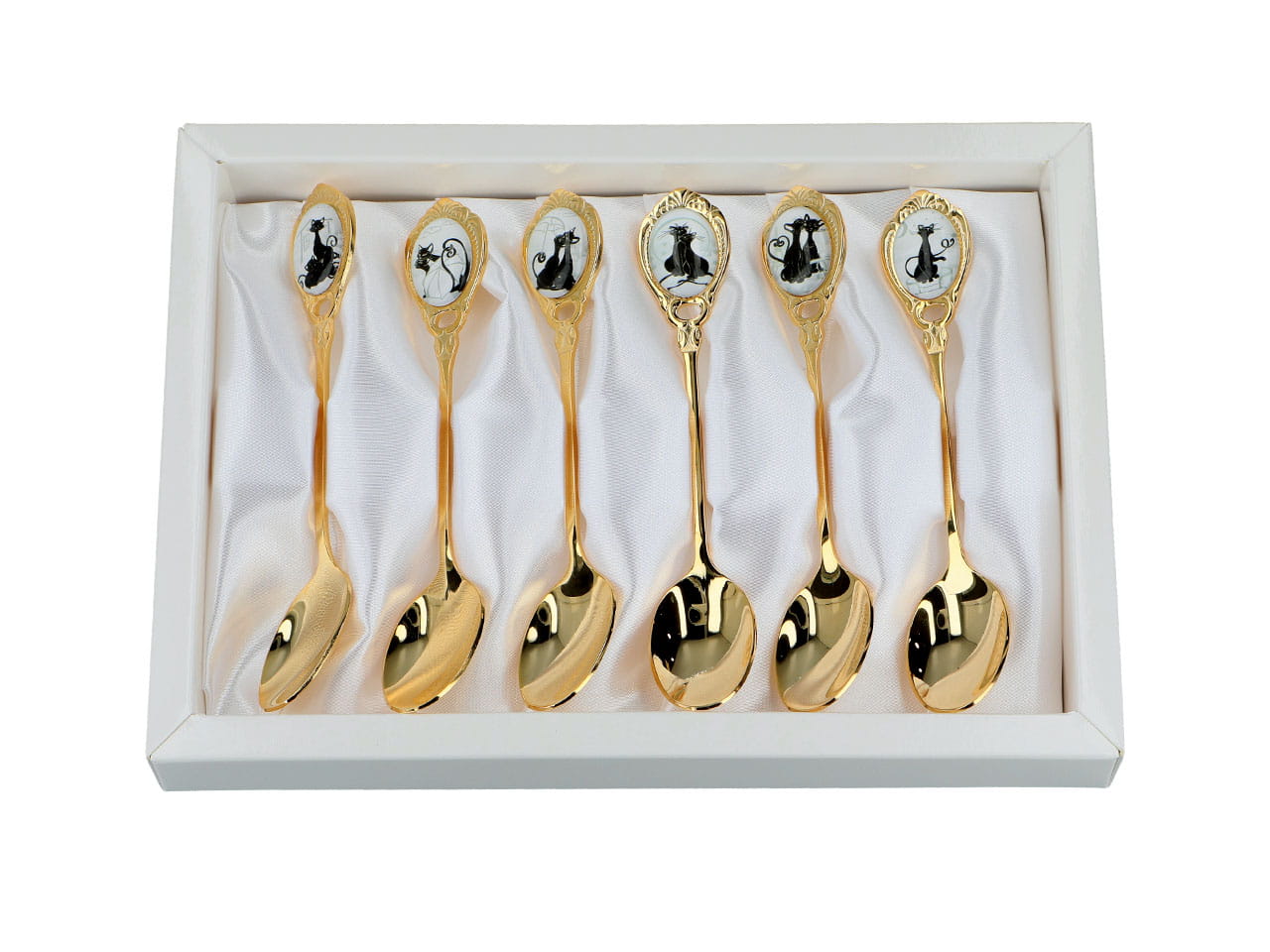 Zestaw składa się z 6 ozdobnych łyżeczek w kolorze złotym.