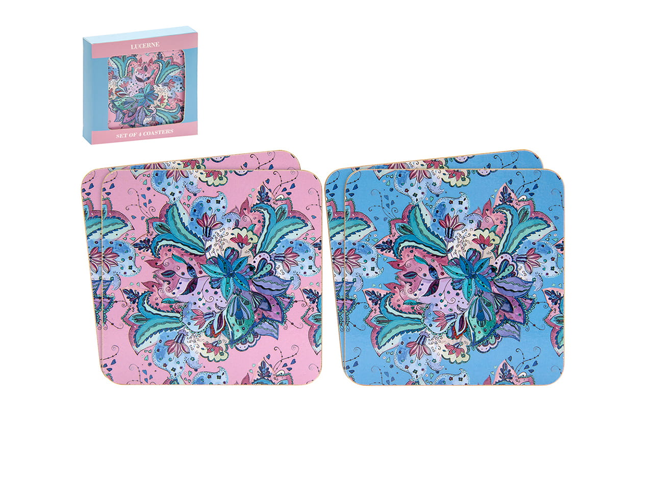 Zestaw 4 podkładek korkowych o wymiarach 11x11cm z motywem Lucerne.