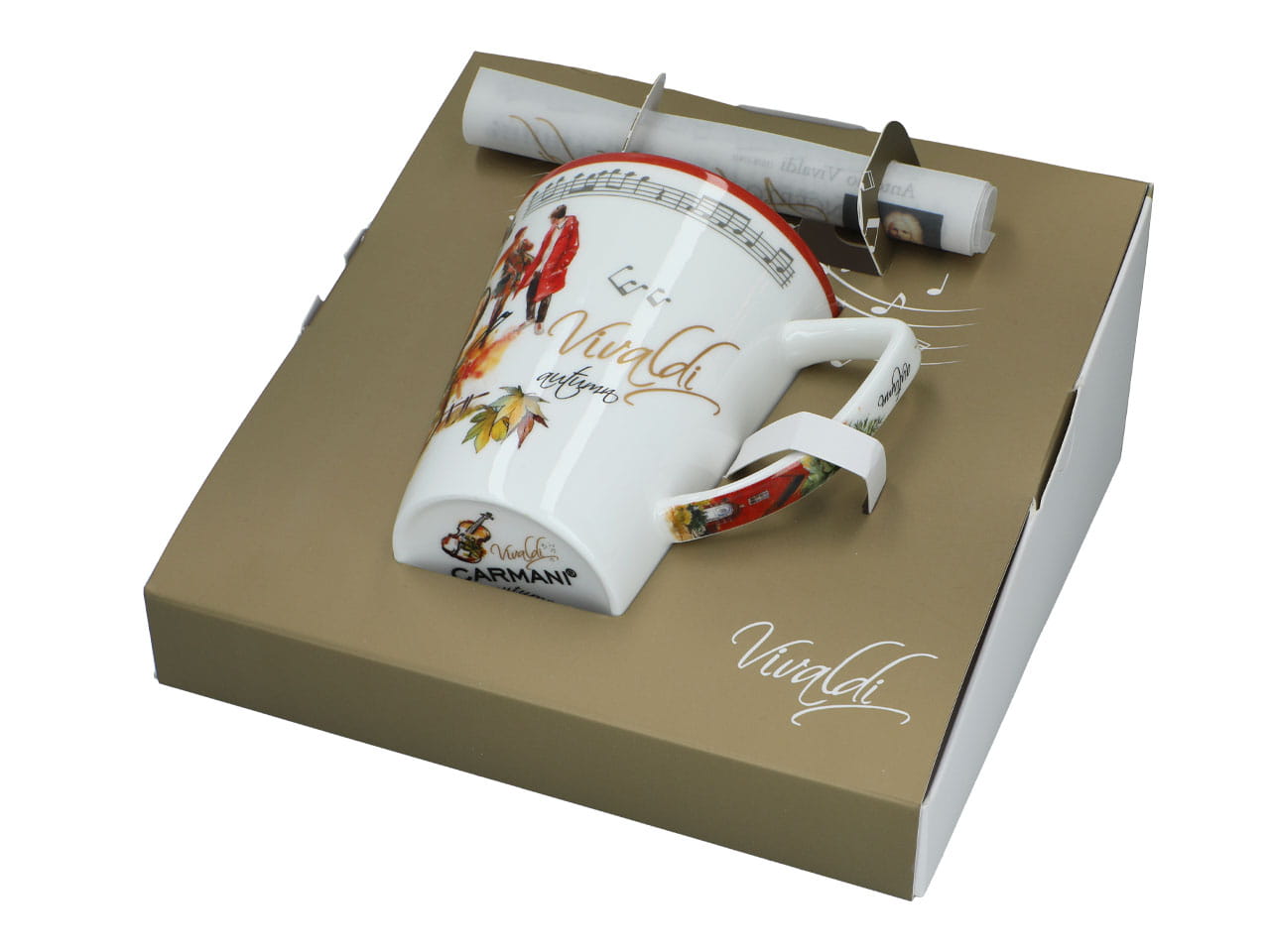 Rozkoszuj się chwilą przyjemności z naszym eleganckim kubkiem, dekoracja inspirowana twórczością Antonio Vivaldiego.