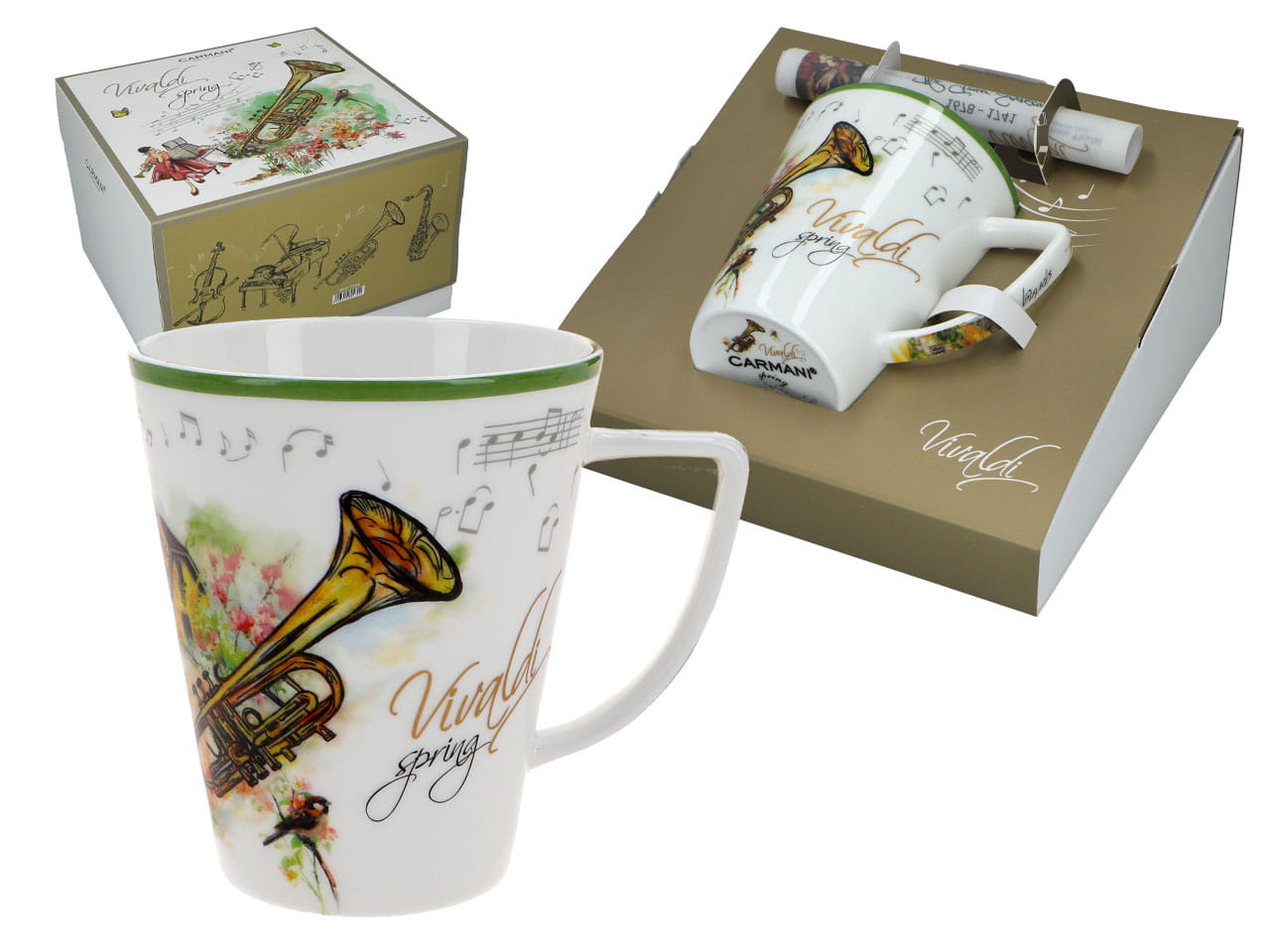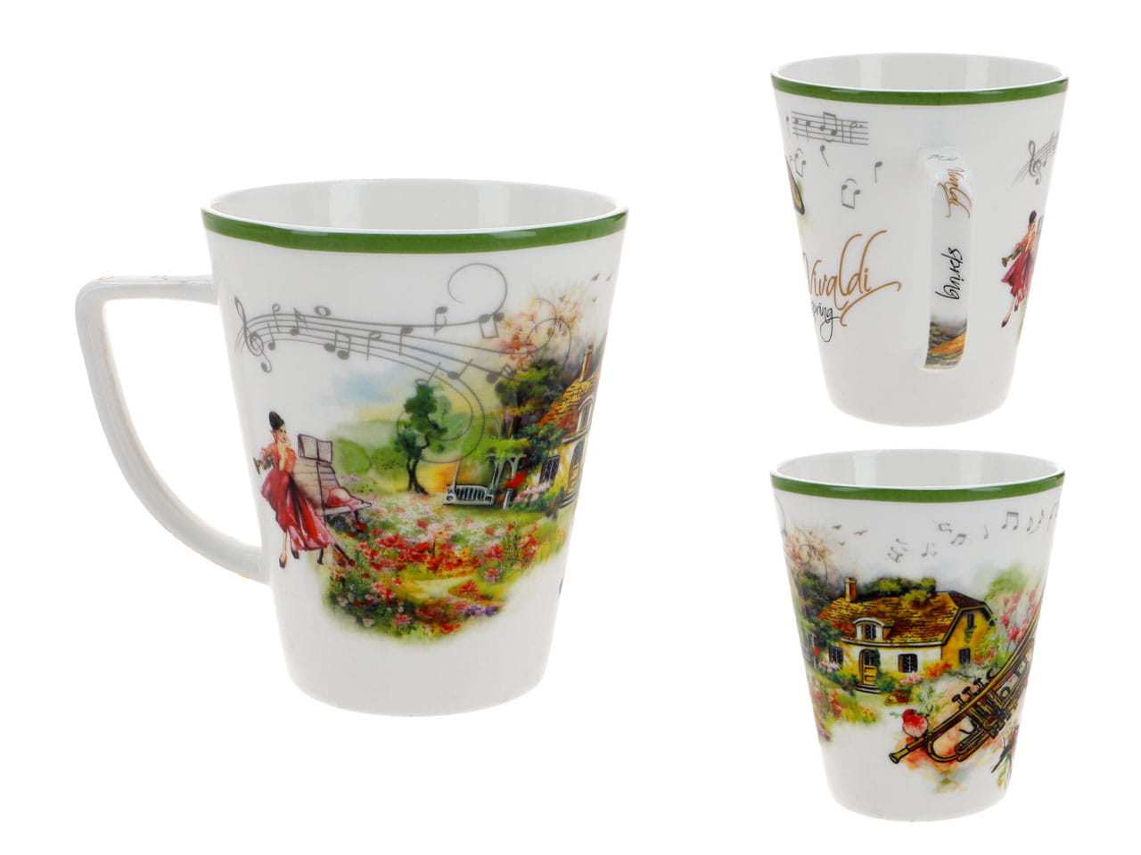Rozkoszuj się chwilą przyjemności z naszym eleganckim kubkiem, dekoracja inspirowana twórczością Antonio Vivaldiego.