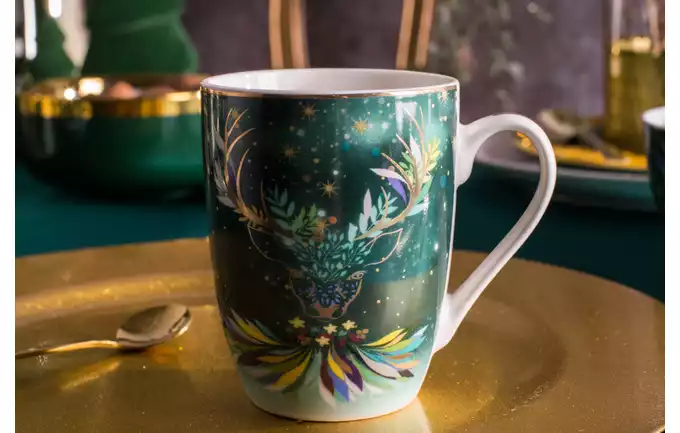 Kubek baryłka z kolekcji świątecznej Mystery z motywem renifera. Idealnie komponuje się z całą kolekcją.