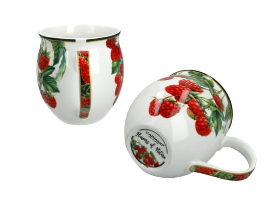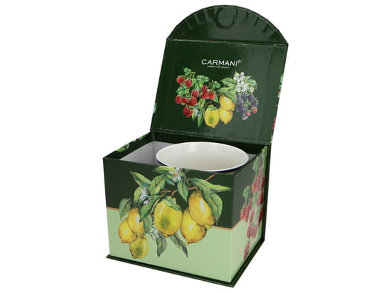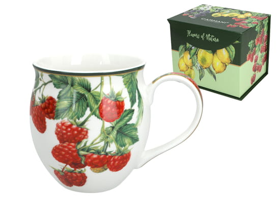 Pręczny kubek beczułka z wyraźnym kolorystycznie, kwiatowym motywie wchodzący w skład mini-kolekcji tych specyficznych kształtem kubków Carmani .