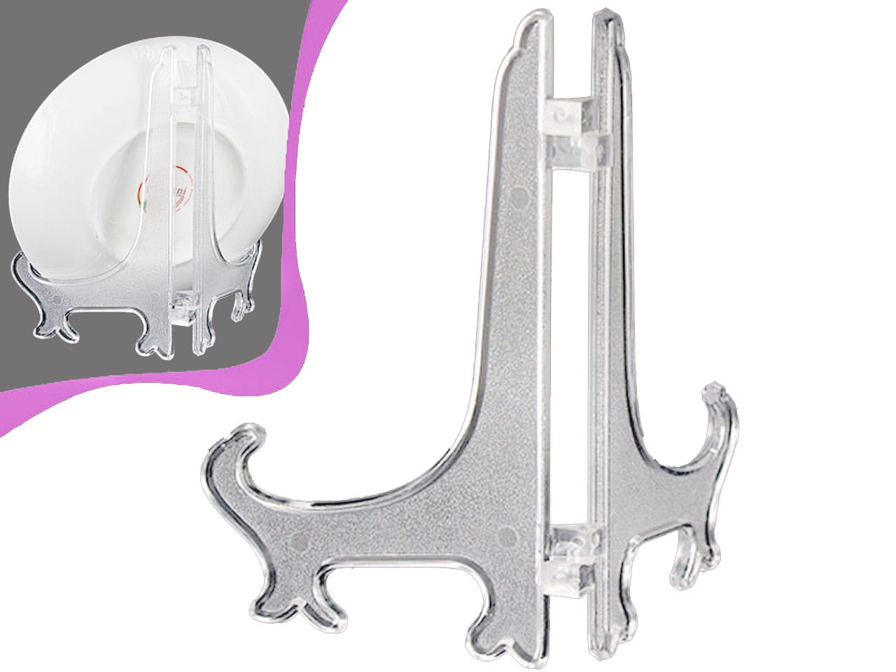 Plastikowy, przezroczysty stojak na talerz.