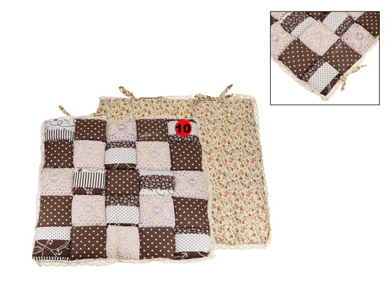 Poduszka na krzesło o motywie kwadracików z koronką.