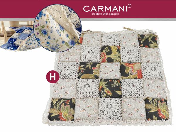 Poduszka na krzesło w romantycznym stylu idealnie sprawdzi się w rustykalnej aranżacji. Kolekcja poduszek daje duży wybór kolorystyczny patchworkowych wzorów połączonych z szydełkową, beżową koronką.