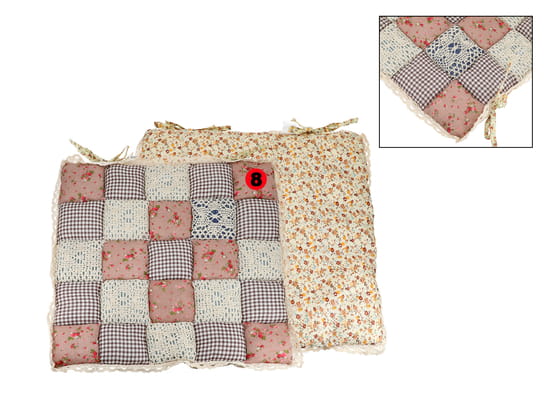 Poduszka na krzesło o motywie kwadracików z koronką.