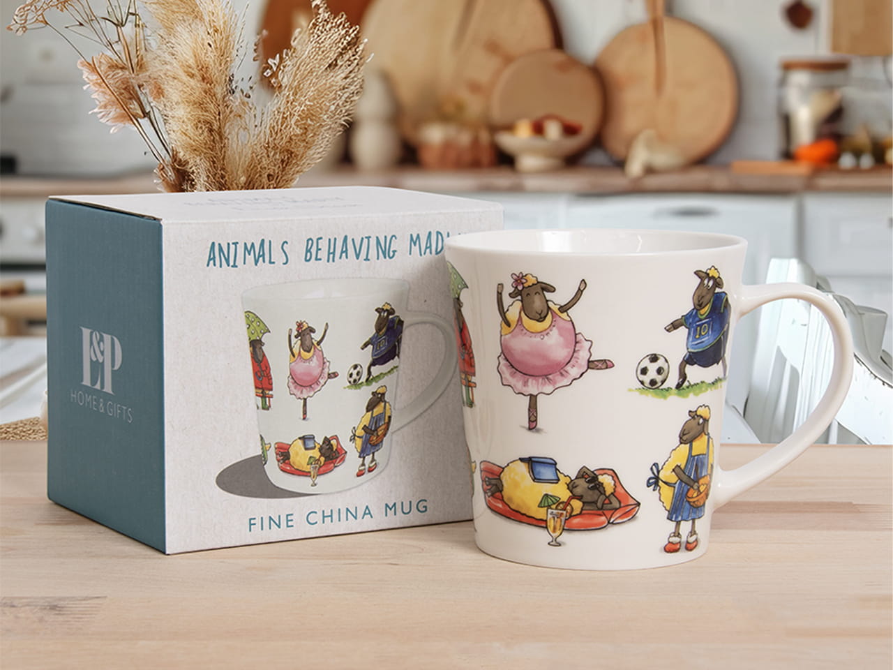 Wykonany z grubszej porcelany kubek Animals Behaning Madly o humorystycznym motywie.