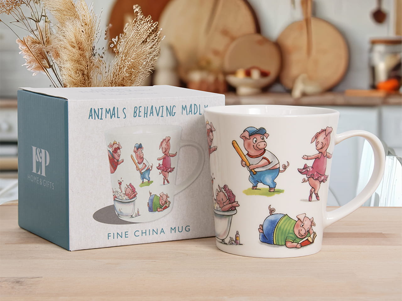 Wykonany z grubszej porcelany kubek Animals Behaning Madly o humorystycznym motywie.