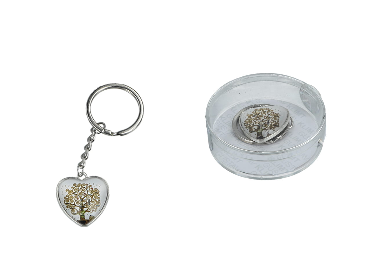 Przywieszka do torebki/breloczek do kluczy serce - G. Klimt, Drzewo życia (białe tło)