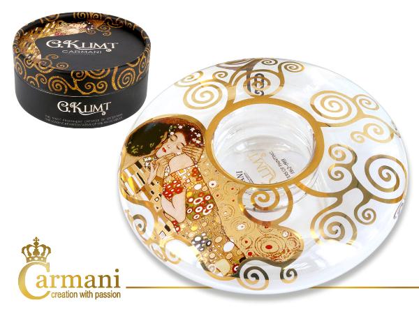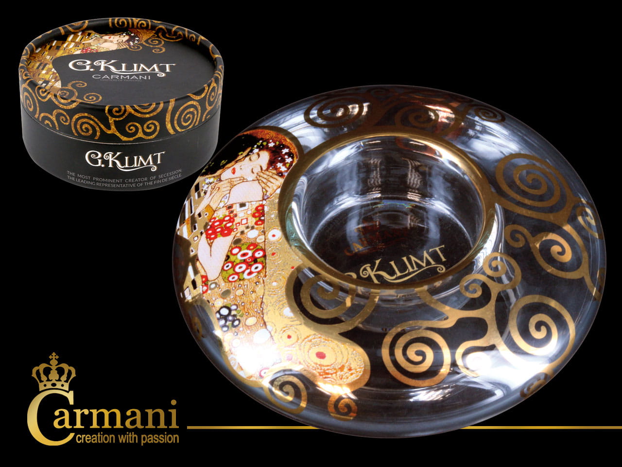 Szklany świecznik ozdobionym dziełem Gustawa Klimta The Kiss - Pocałunek