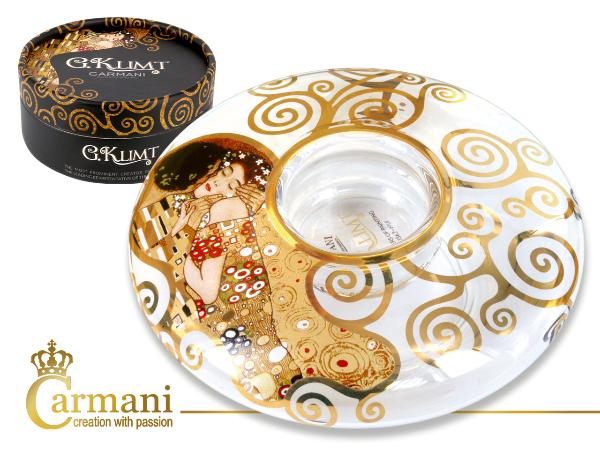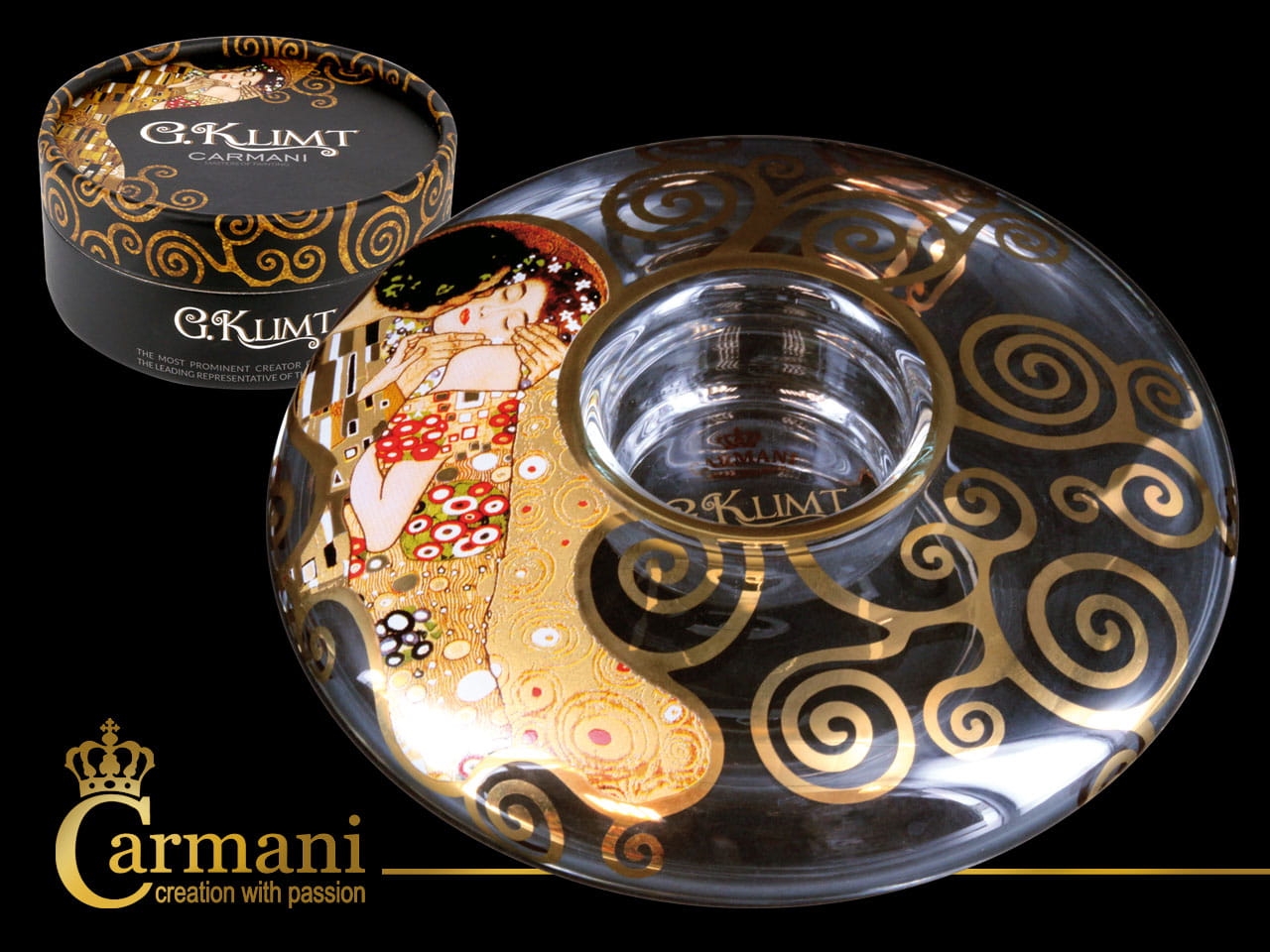 Szklany świecznik ozdobionym dziełem Gustawa Klimta The Kiss - Pocałunek