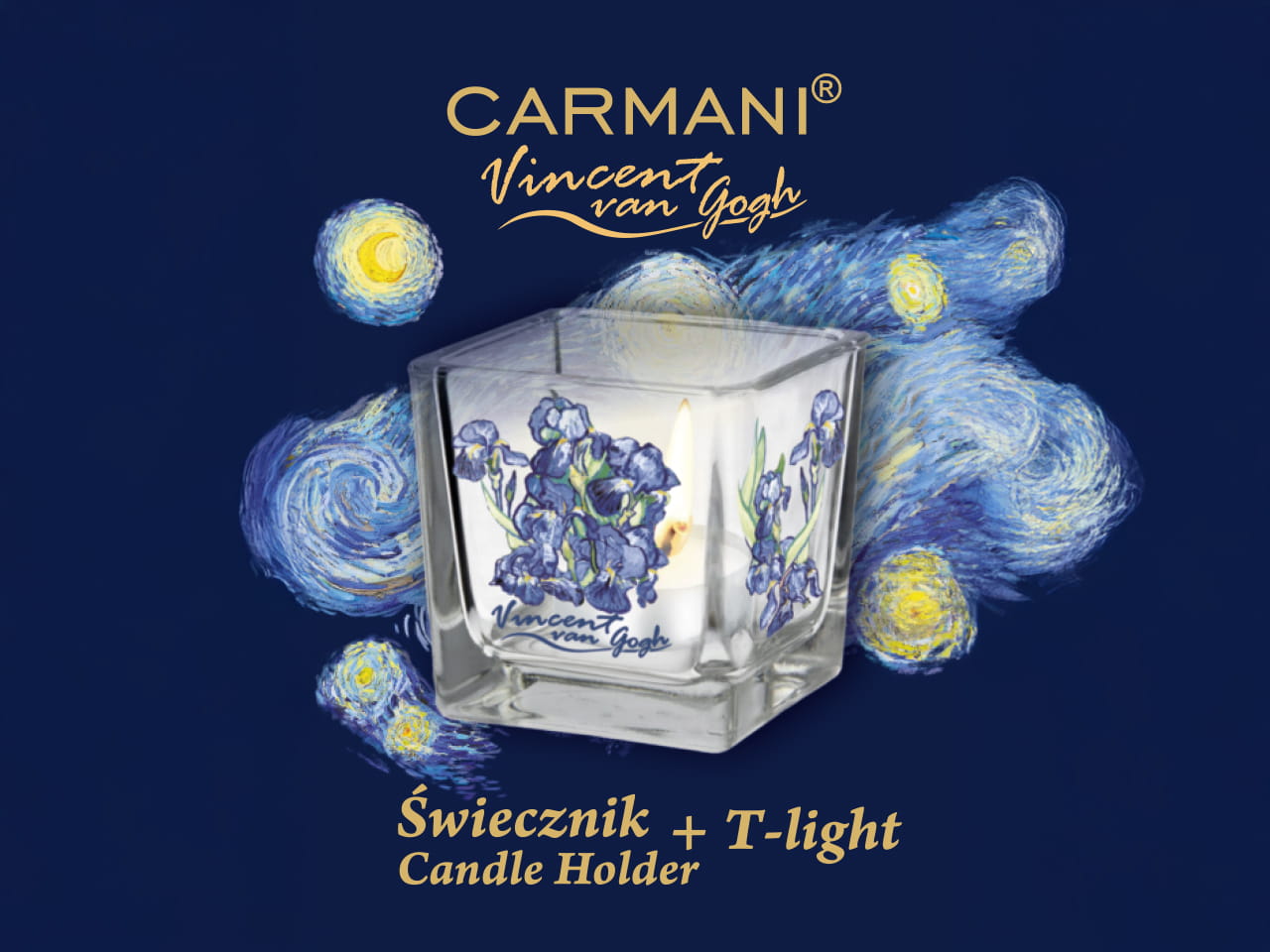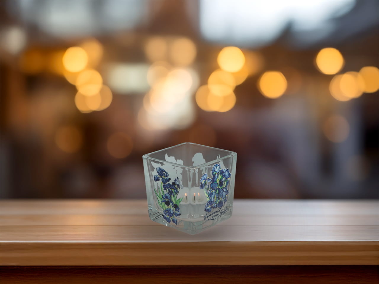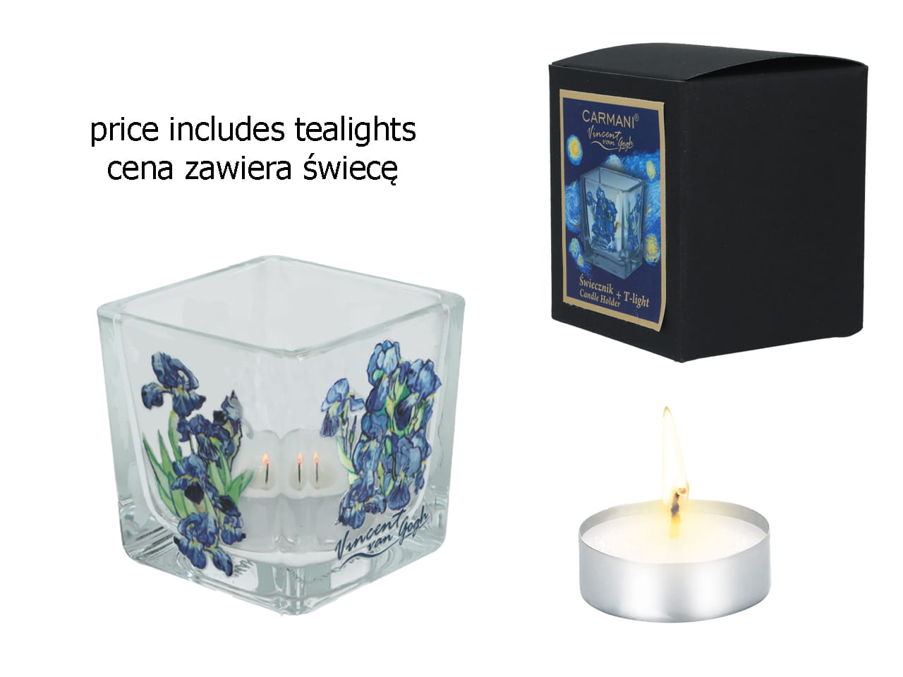 Świecznik szklany + tealight - V. van Gogh, Irysy
