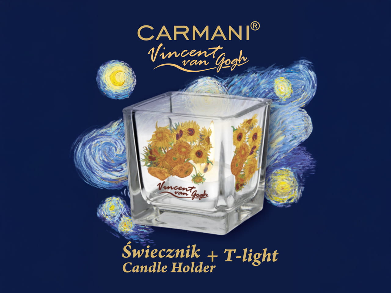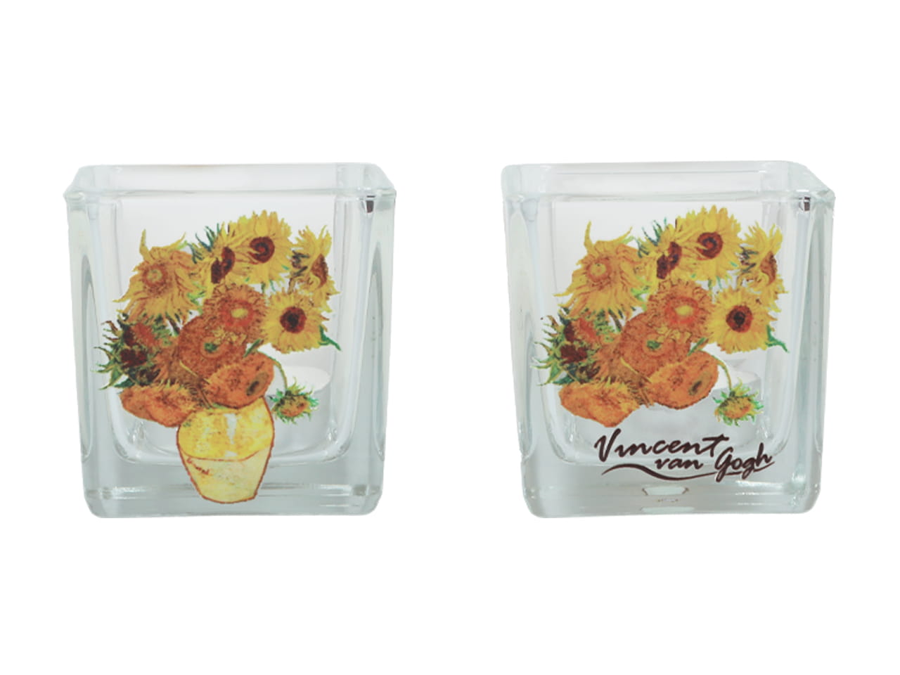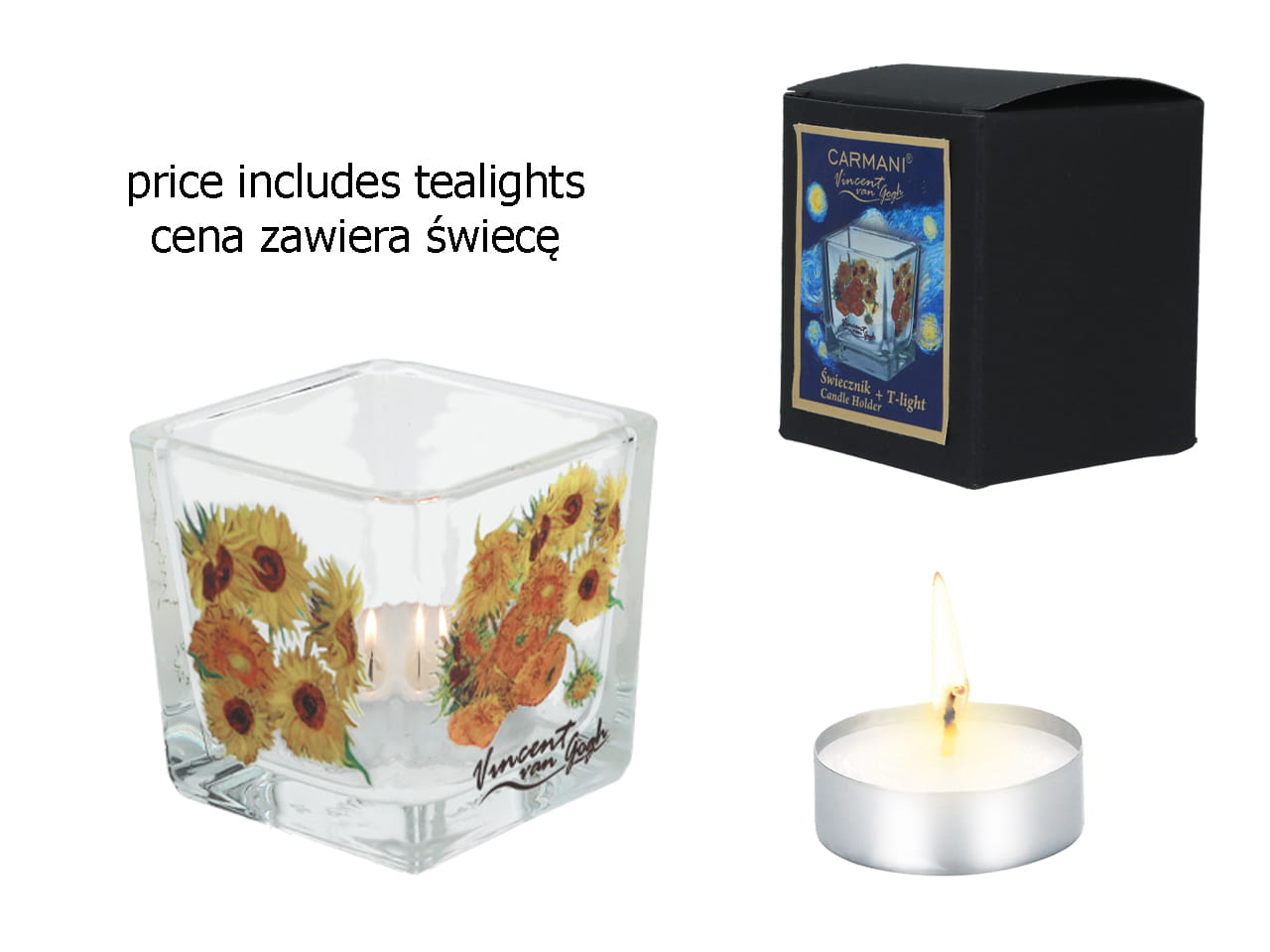 Świecznik szklany + tealight - V. van Gogh, Słoneczniki