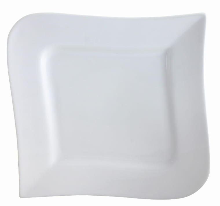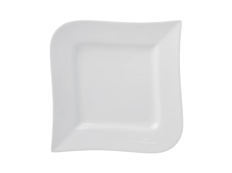 Talerz deserowy Fala 17 x 17 cm to nowoczesny, geometryczny kształt oraz ciepła biel porcelany.