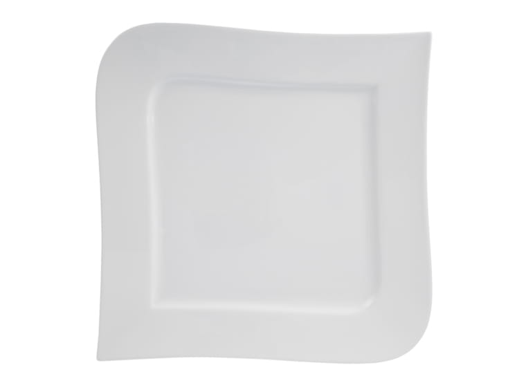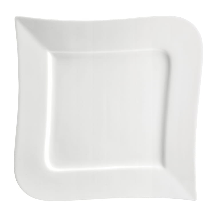 Talerz kwadrat Fala 24,5 x 24,5 cm to nowoczesny, geometryczny kształt oraz ciepła biel porcelany.