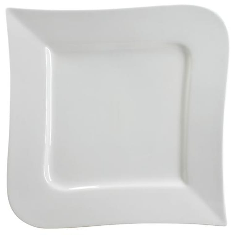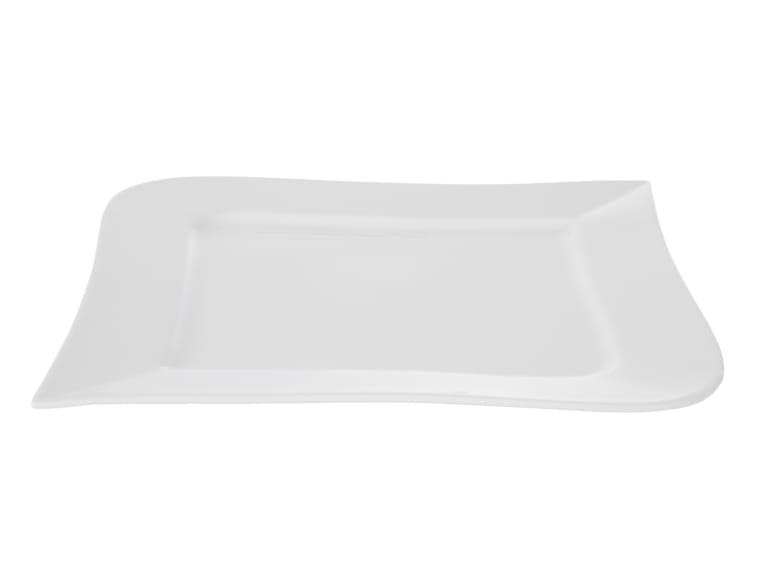 Talerz Fala 33 x 33 cm to nowoczesny, geometryczny kształt oraz ciepła biel porcelany.