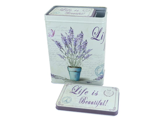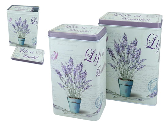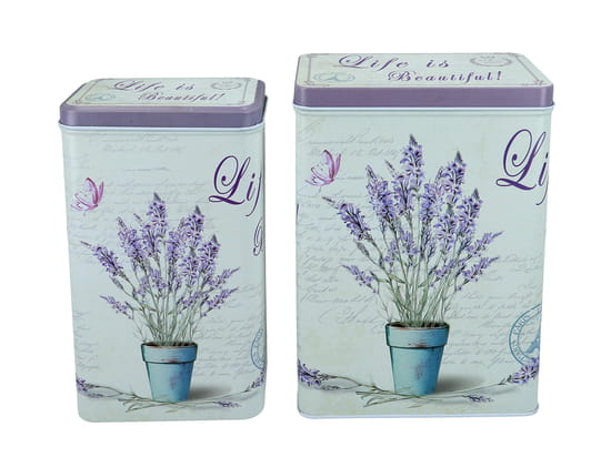 Komplet 2 puszek metalowych z motywem lawendy.